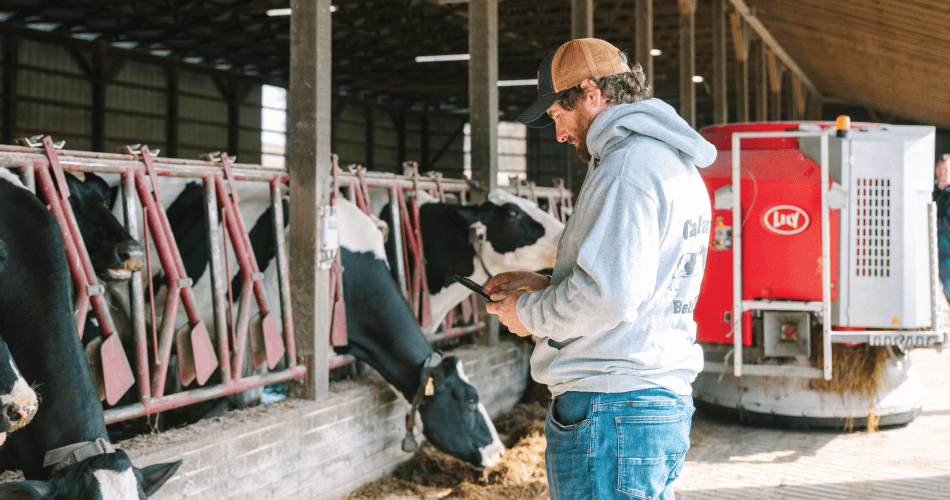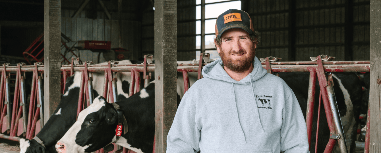 Devin Cain, along with his father Larry, cares for about 80 Holstein cows and 300 acres of crops and pasture on their farm in Belmont County, Ohio. Technology plays an important role on their farm, helping them operate efficiently while providing the best care for their cows.